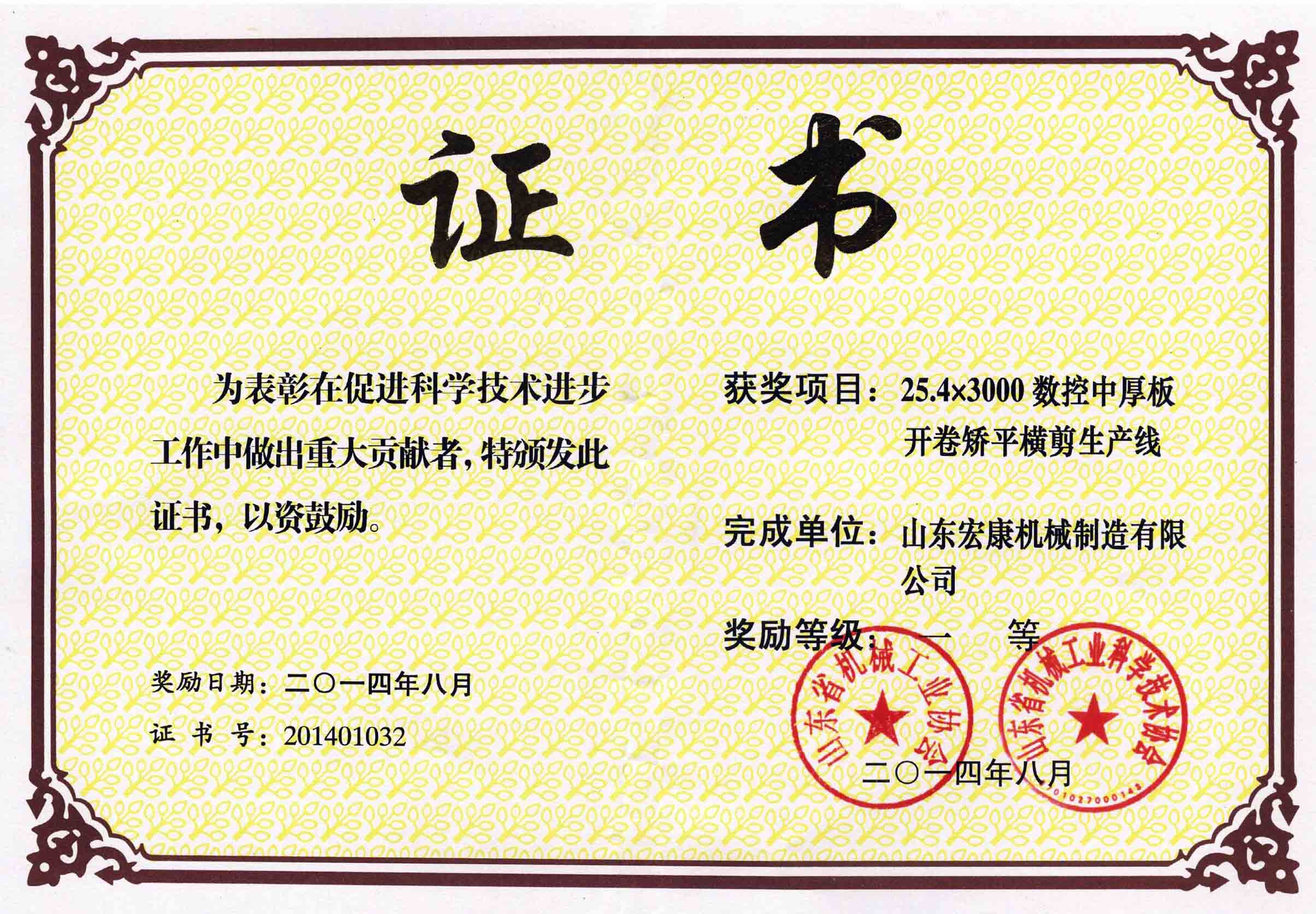全省机械工业科技创新与信息化工作会议总结了全省机械工业科技创新和信息化工作,表彰了 2014年度山东省机械工业科技进步奖获奖单位和个人,并邀请信息化专家就企业信息化建设、加快两化深度融合推动产业升级等内容作专题报告。集团公司“25.4×3000数控中厚板开卷矫平横剪生产线”、“CMK400×2000数控龙门拖板卧式车床”两个项目分别获得2014年度山东省机械工业科技进步一、二等奖。